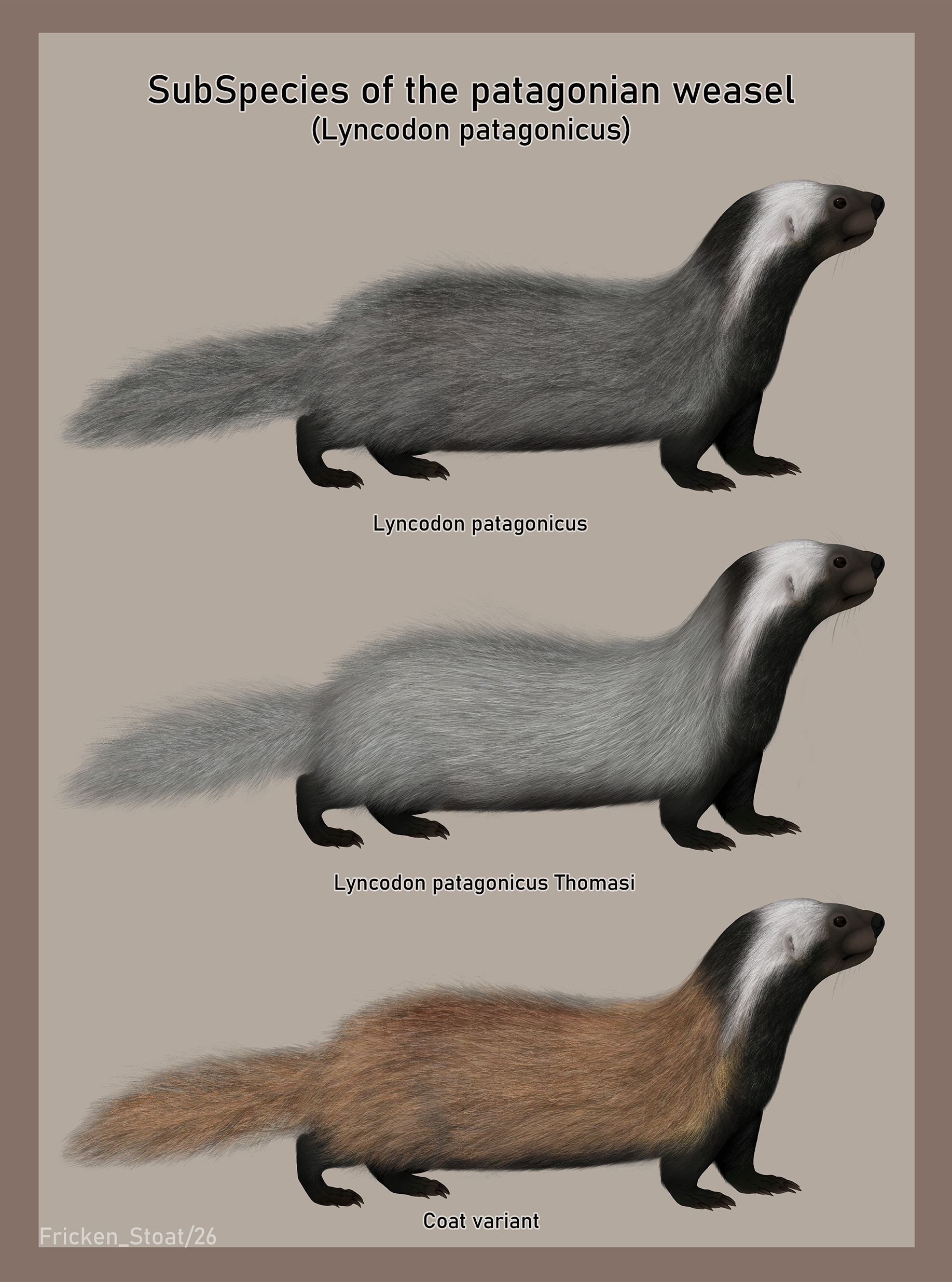 Weasels • Colour variations – By IceIceAislynn ► Malay weasel (Mustela nudipes) • Colour variations – By Fricken Stoat ► Patagonian weasel (Lyncodon patagonicus) Wolverine